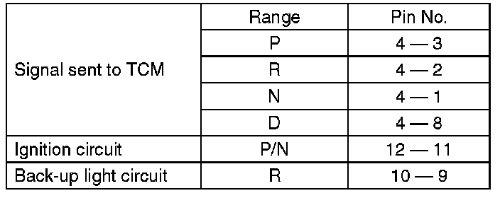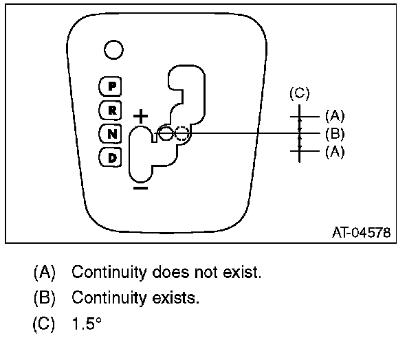 3) Check that there is continuity at equal points when the select lever is moved 1.5 degrees in both directions from the "N" range.