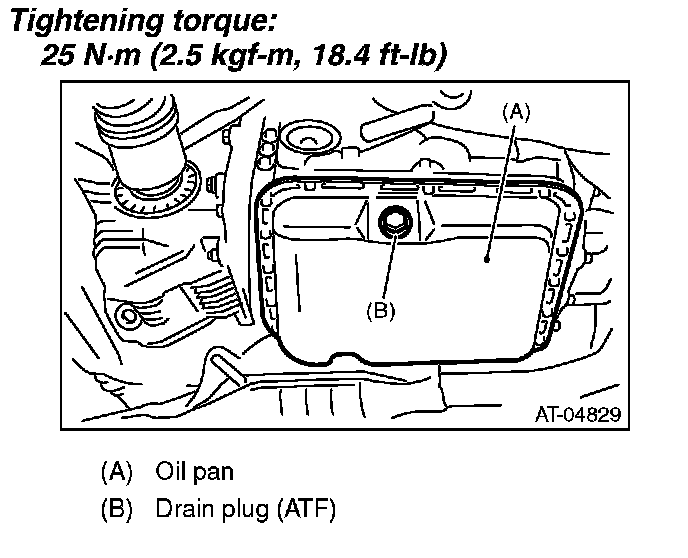 11) Perform replacement with a new gasket, and tighten the drain plug (ATF).