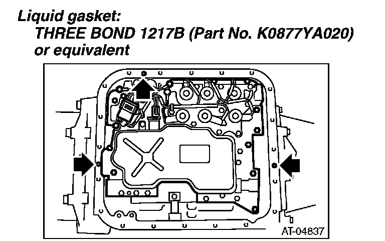 4) Fill the 3 locations of the transmission case excluding the bolt holes with an ample amount of liquid gasket.