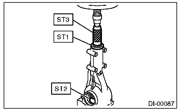 5) Press-fit the front bearing cone into case with ST1, ST2 and ST3.