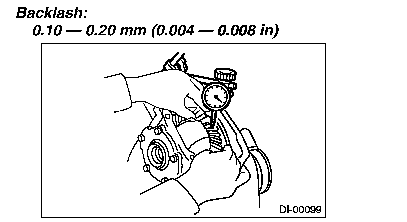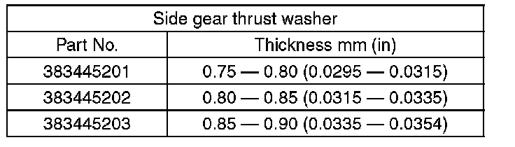 2) Adjust the backlash as specified by selecting side gear thrust washer.