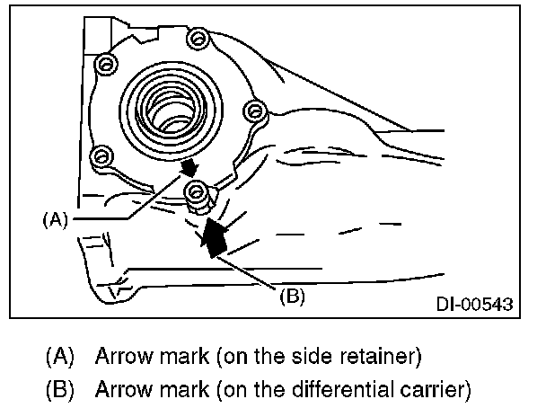 4) Align the arrow mark on the differential carrier with the arrow mark on the side retainer during installation.