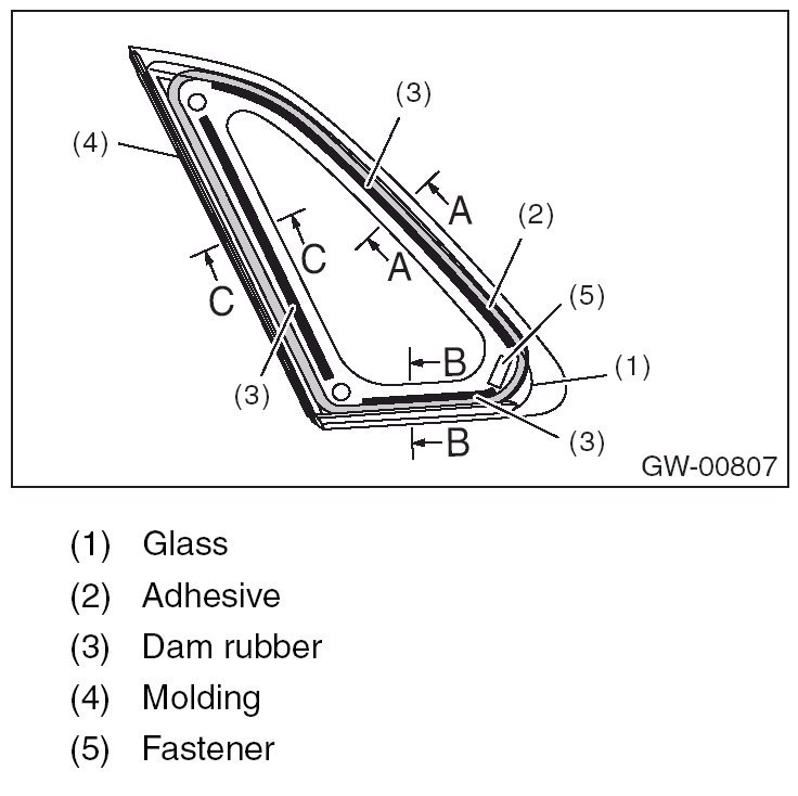 - For minimum drying time and vehicle standing time before driving after bonding, follow instructions or instruction manual from the adhesive manufacturer.