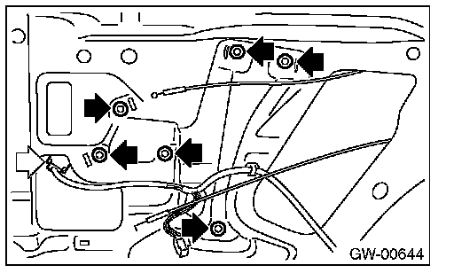 3. Remove six bolts to remove the rear regulator and motor assembly.