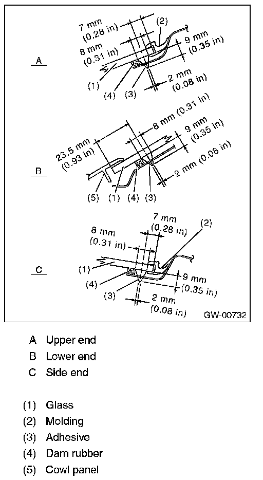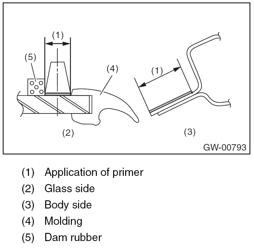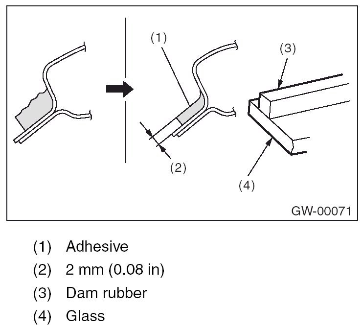 - For minimum drying time and vehicle standing time before driving after bonding, follow instructions or instruction manual from the adhesive manufacturer.