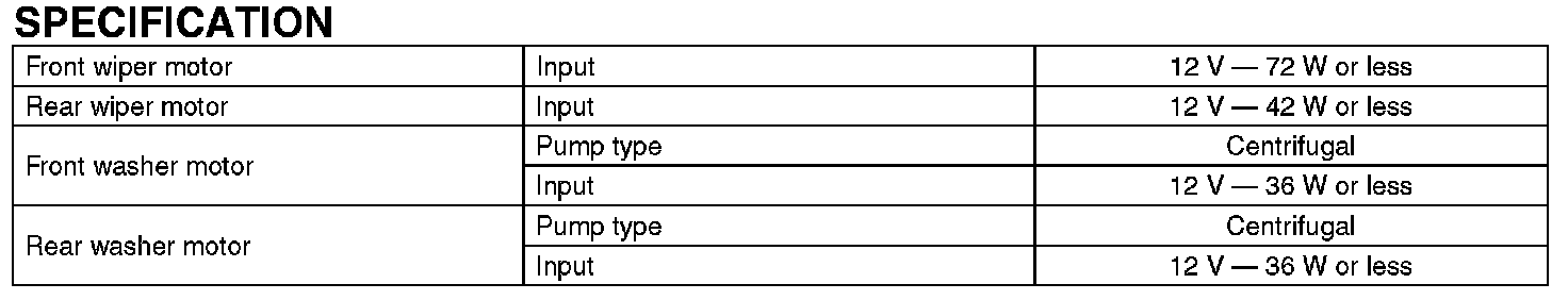 Wiper and Washer Systems: Specifications