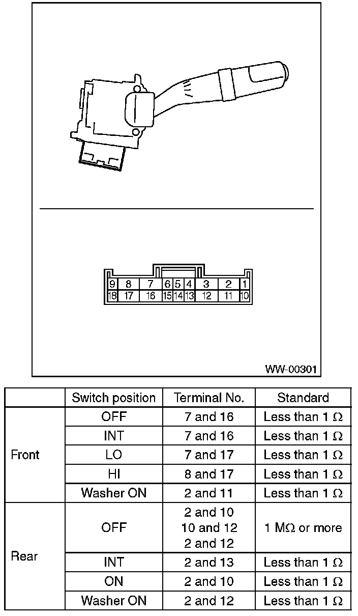 2. Check the intermittent operation (inspection of the wiper switch alone)