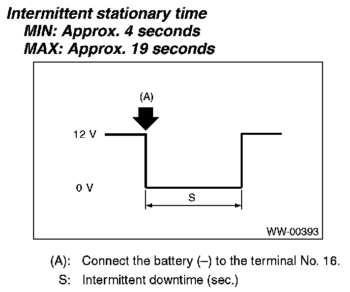 5. Connect the battery (-) to the terminal No. 16, and check the voltage between terminal No. 7 - No. 2 when performing the intermittent operation.