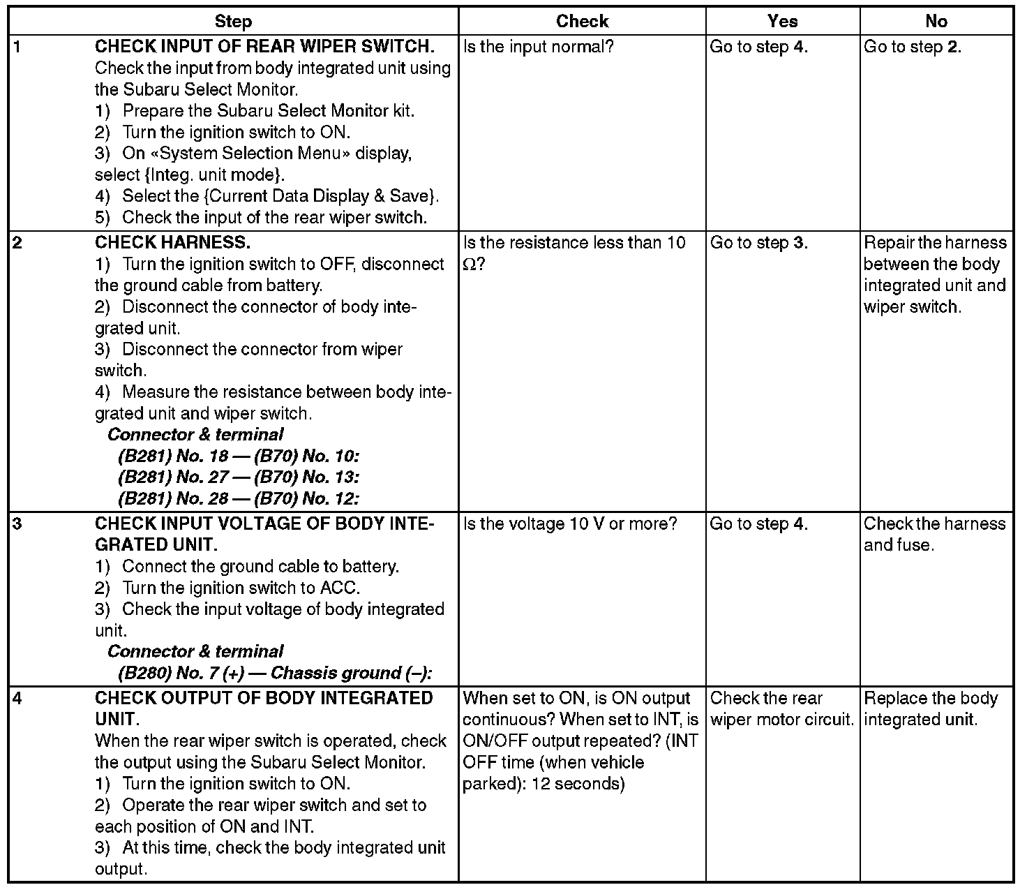 When the front wiper switch is operated, check the input signal using the Subaru Select Monitor.