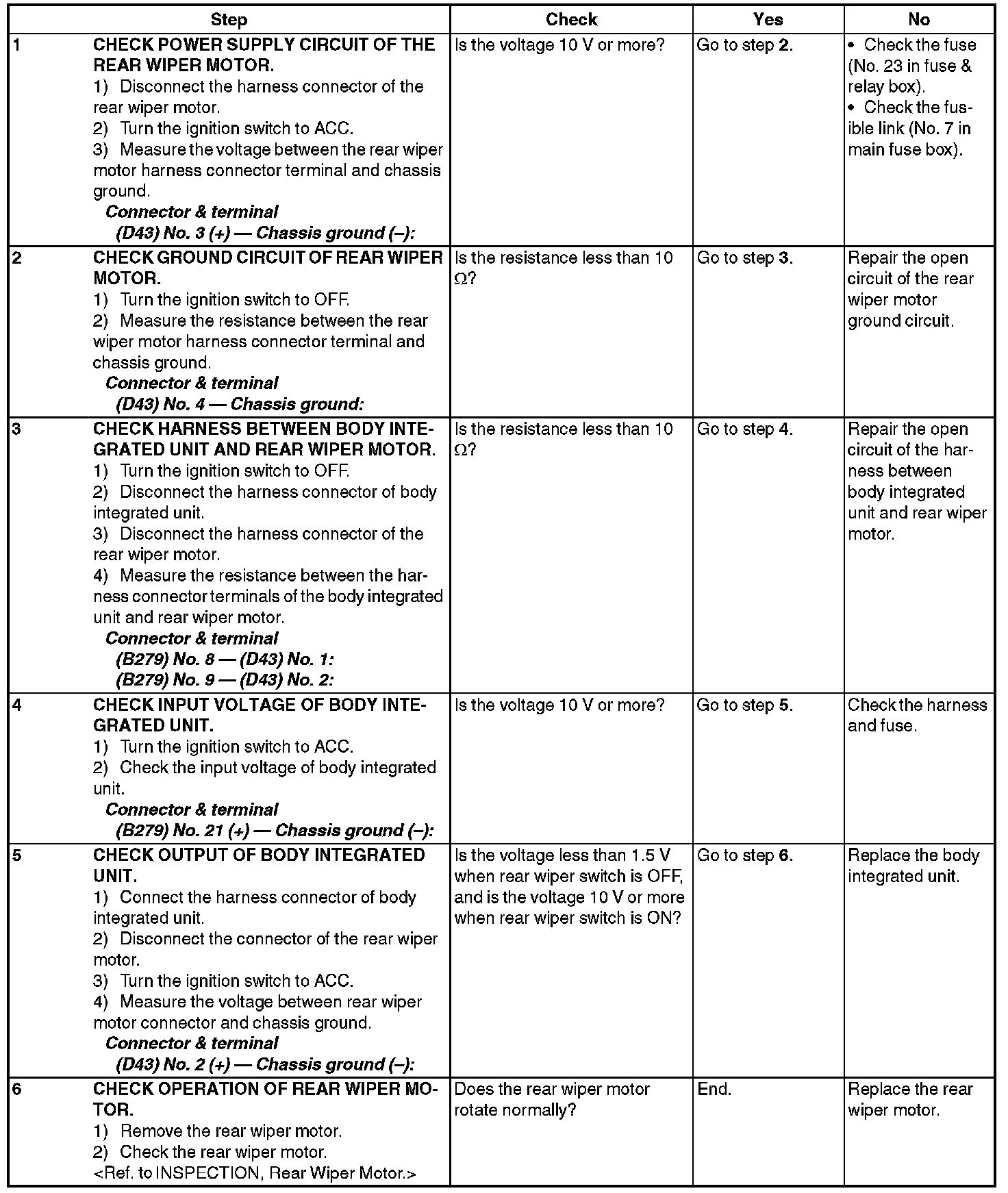 6. Perform step (1) to (5) above when intermittent control switch is in MIN or MAX, and replace the switch if the operation is not as specified.