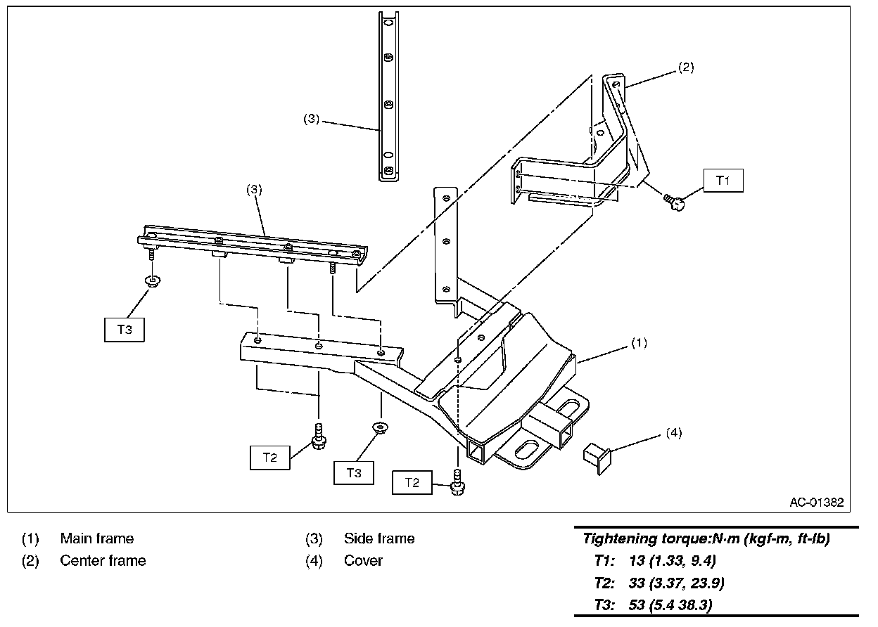CAUTION: The trailer hitch main frame is heavy. Be careful when removing.