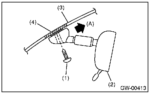 5. Slide the rearview mirror (2) to the upper side (A) of windshield glass (3), and remove the mirror from mount (4).