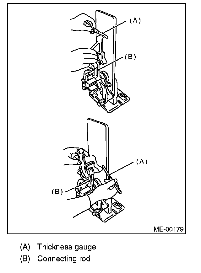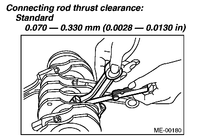 3) Install the connecting rod fitted with bearing to crankshaft and measure the thrust clearance. If the clearance exceeds the standard or offset wear occurs, replace the connecting rod.