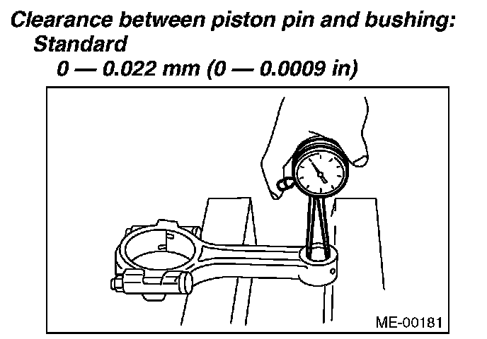 6) Inspect the bushing at connecting rod small end, and replace if worn or damaged. Also measure the piston pin clearance at the small end of the connecting rod.