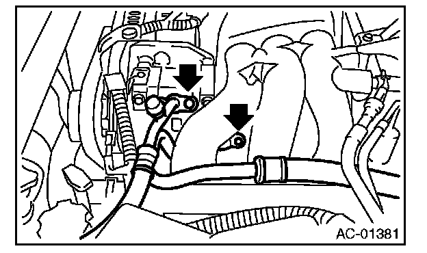 7. Remove the bolt and remove the low-pressure hose and high-pressure hose.
