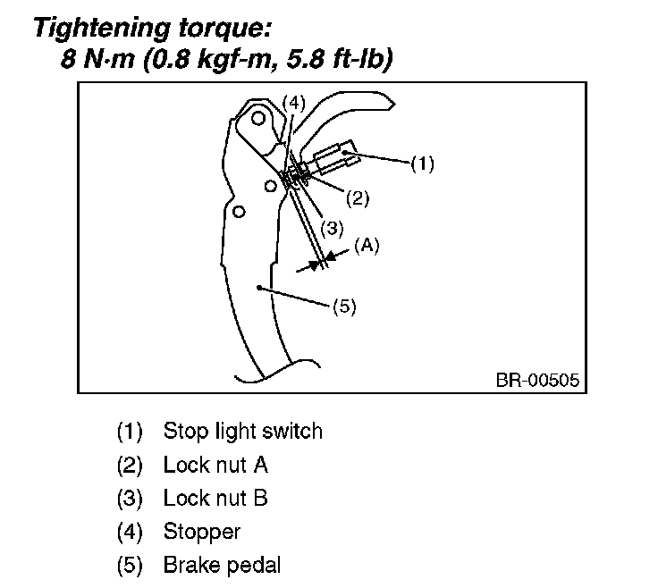 3) If it is not within the specification, adjust it by adjusting the position of the stop light switch.