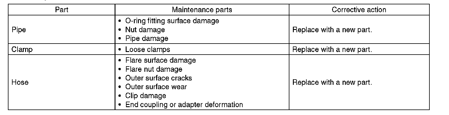 Although the surface layer materials of rubber hoses have excellent weathering resistance, heat resistance and resistance for low temperature brittleness, they are likely to be damaged chemically by brake fluid, battery electrolyte, engine oil and automatic transmission fluid and their service lives are to be very shortened. Wipe off hoses immediately if any of these come into contact with the hoses.