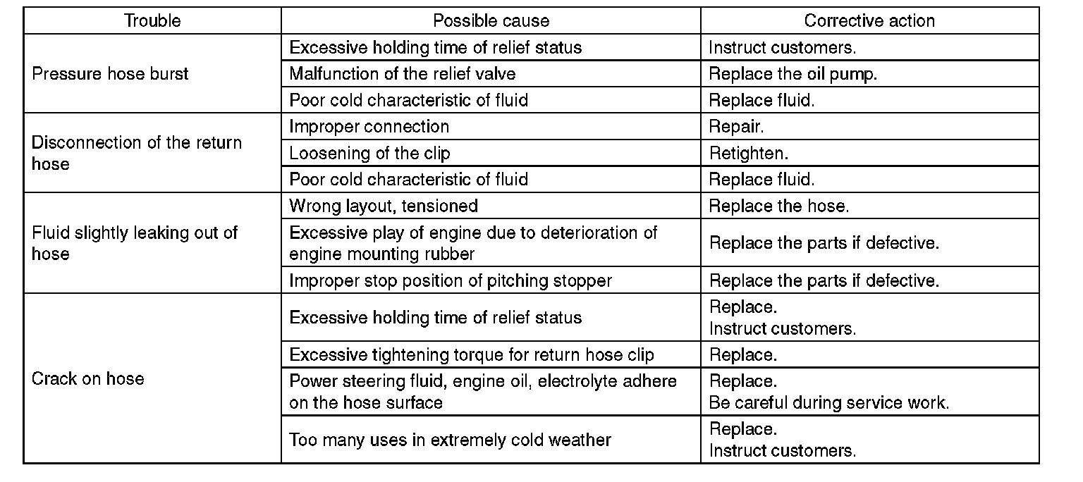 Since resistances for heat or low temperature brittleness are gradually declining according to time accumulation of hot or cold conditions for the hoses and their service lives are shortening accordingly, it is necessary to perform careful inspection frequently when the vehicle is used in hot weather areas, cold weather areas and a driving condition in which many steering operations are required in short time.