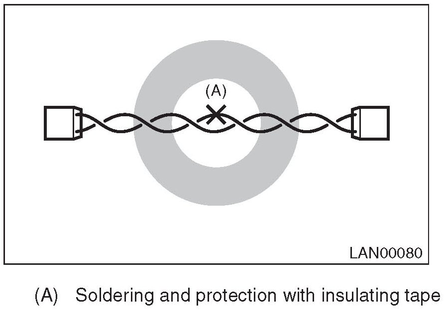 - When repairing the harness, connect the wires using soldering and protect it with insulating tape etc.