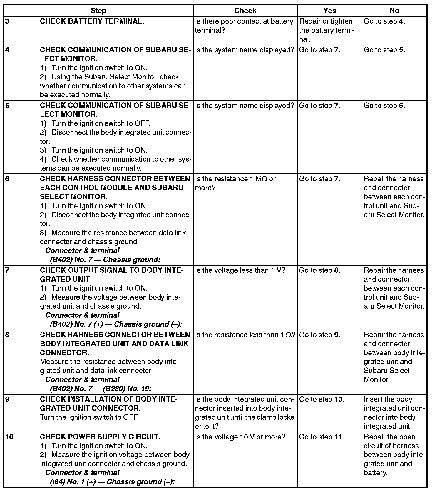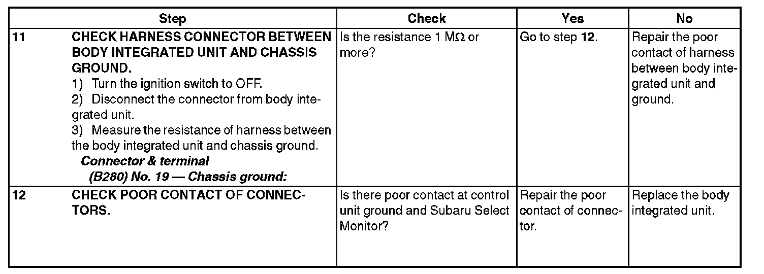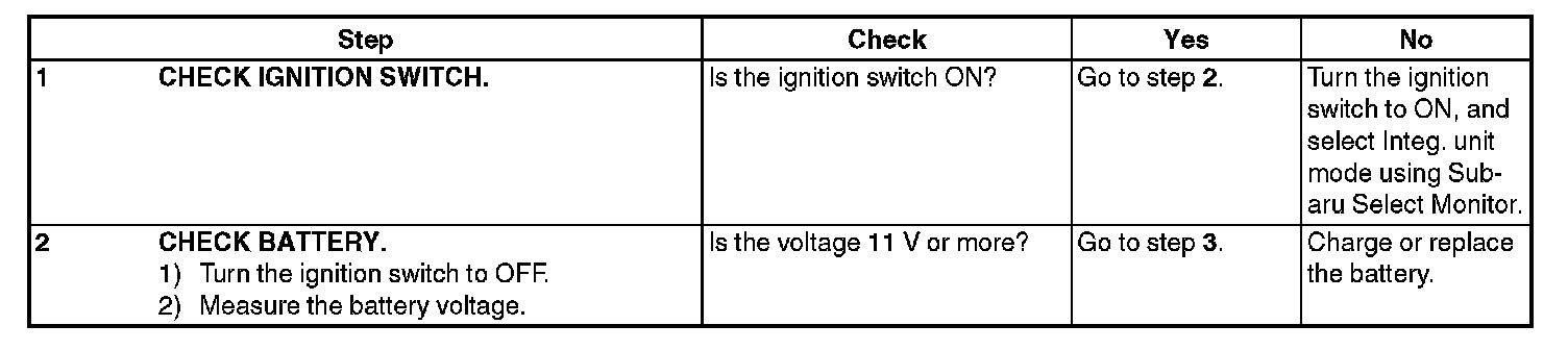 CAUTION: When replacing body integrated unit on the model with immobilizer system, refer to the "PC application help for Subaru Select Monitor"