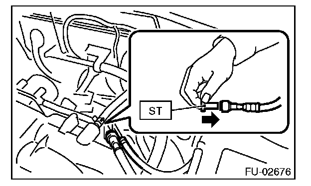 1. Disconnect the quick connector of the fuel delivery line by pushing the ST in the direction of the arrow.