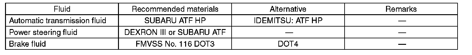 CAUTION: Always use the recommended or equivalent ATF. Using material except recommended one or substitute would cause trouble.