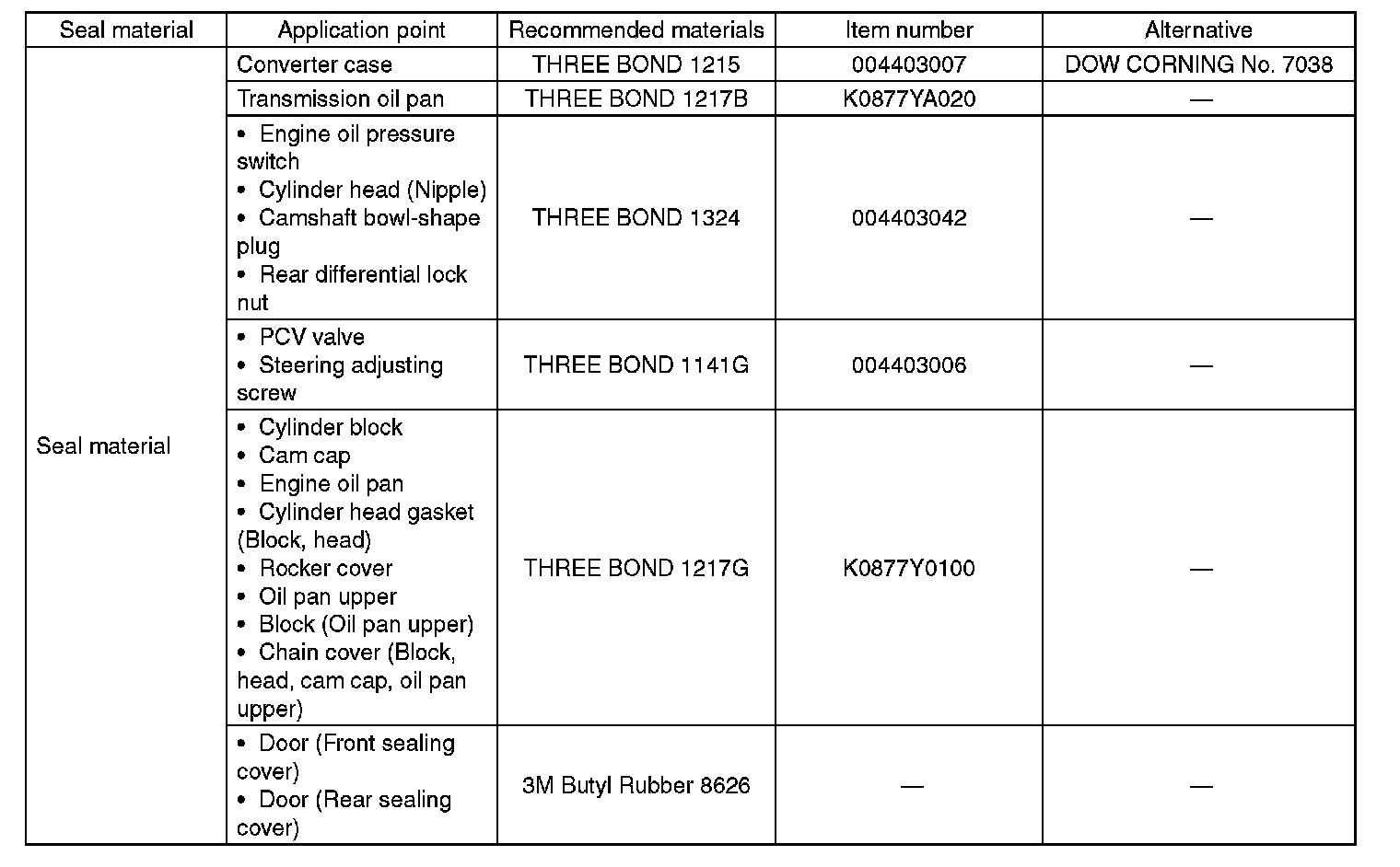 To insure the best performance, always use the specified oil, gasoline, adhesive, sealant, etc. or a substitute of equivalent quality.