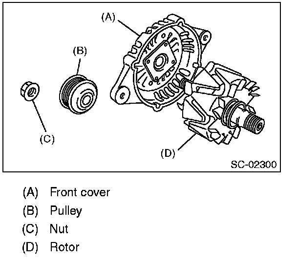 5. After reassembly, turn the pulley by hand to check that rotor turns smoothly.