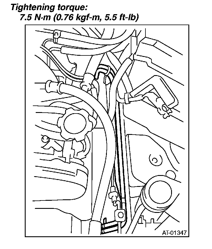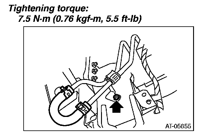 8) Connect the ATF cooler hose to the pipe on the transmission side.
