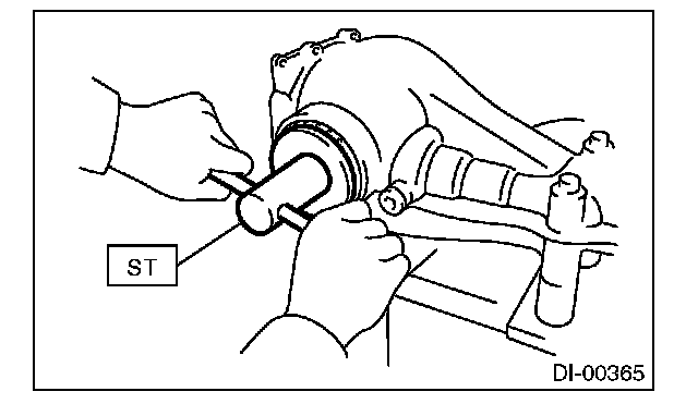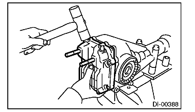 Be careful not to hit the teeth of hypoid driven gear against the differential carrier.