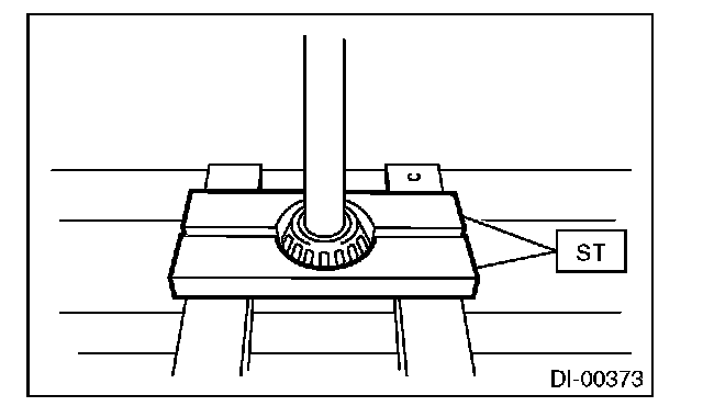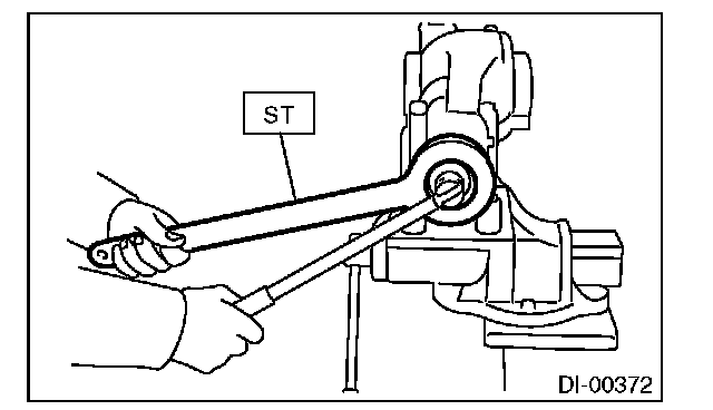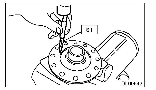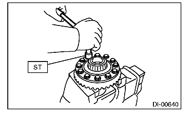 12) Using the ST, loosen the hypoid driven gear bolt and remove the hypoid driven gear.