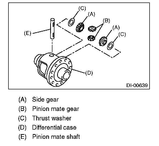 14) Draw out the pinion mate shaft and remove pinion mate gears, side gears and thrust washers.