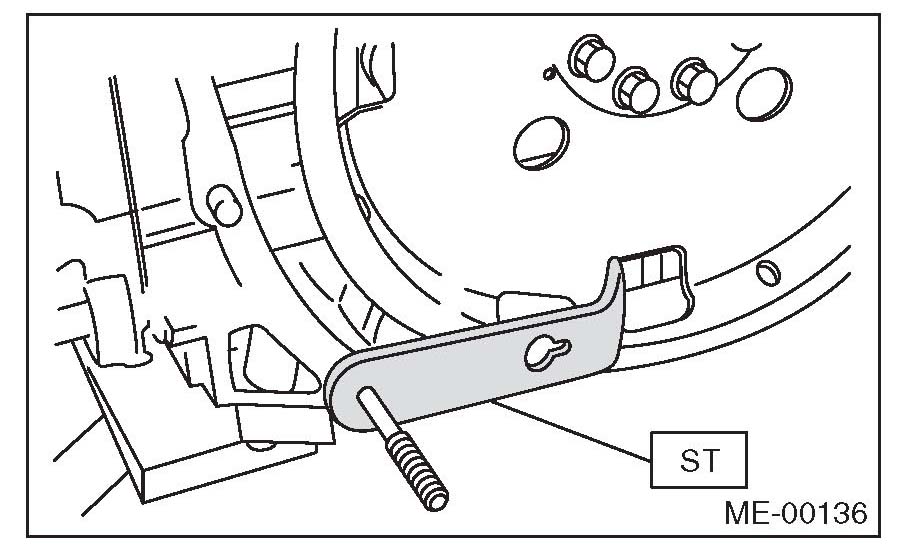 2) Use the ST to lock the crankshaft, and remove the drive plate.