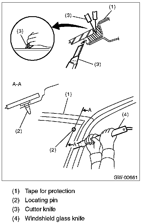 6. Make a cut in the adhesive part using a cutter blade so that windshield glass knife can be inserted easily.
