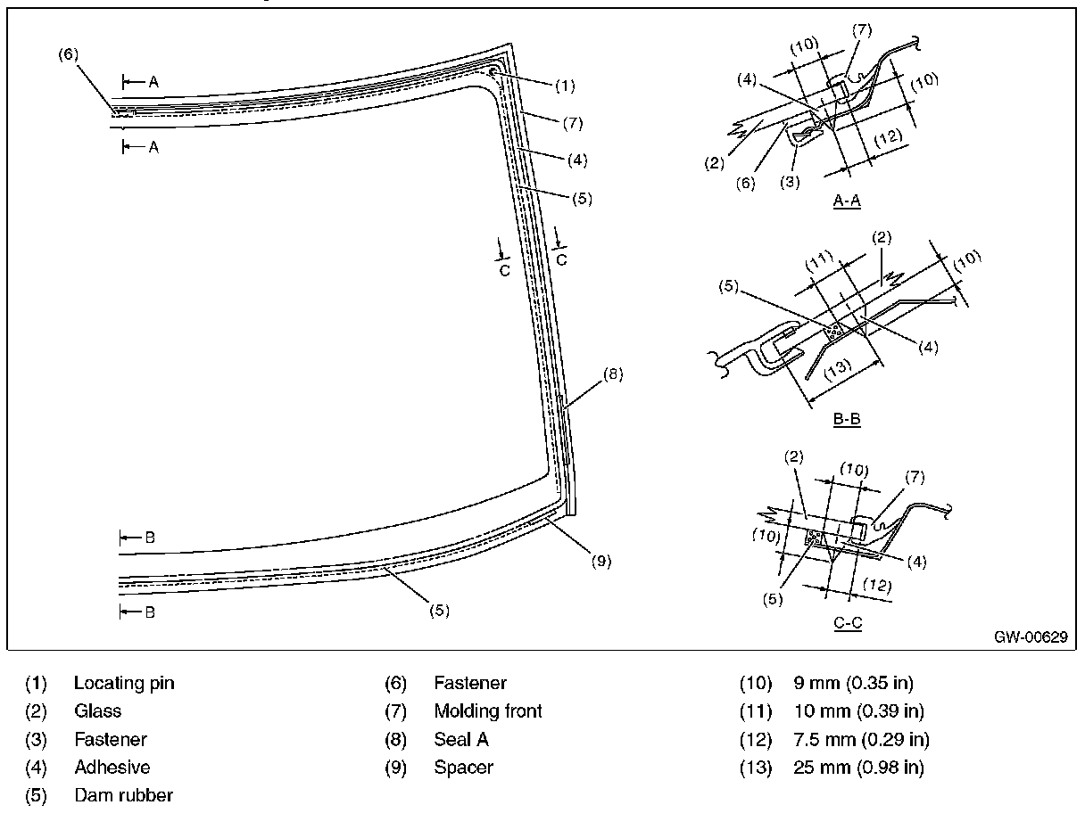 - For minimum drying time and vehicle standing time before driving after bonding, follow instructions or instruction manual from the adhesive manufacturer.