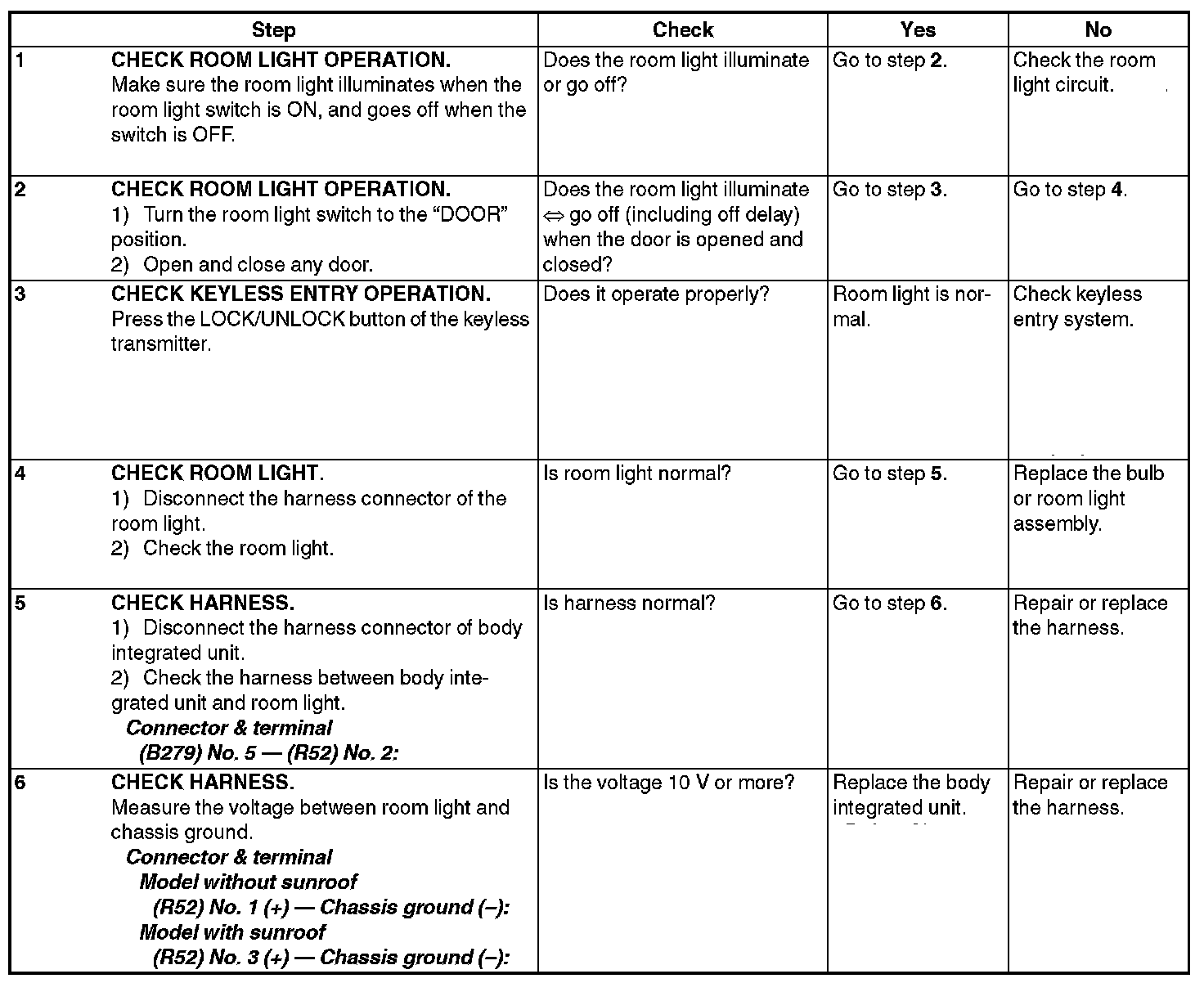 Check Room Light Operation