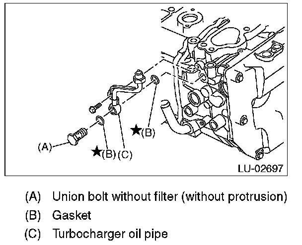 13) Install the turbocharger oil pipe.