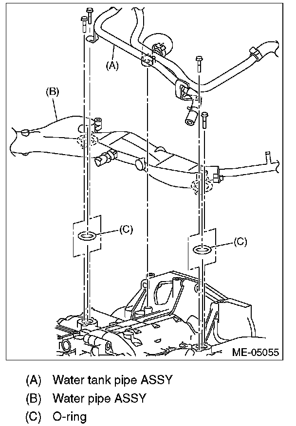 10) Install the blow-by pipe and water pipe assembly. (Oil pipe RH only)