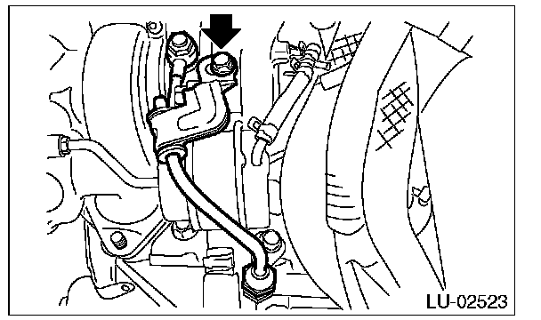 17) Tighten the bolts which hold the oil inlet pipe stay to the turbocharger.