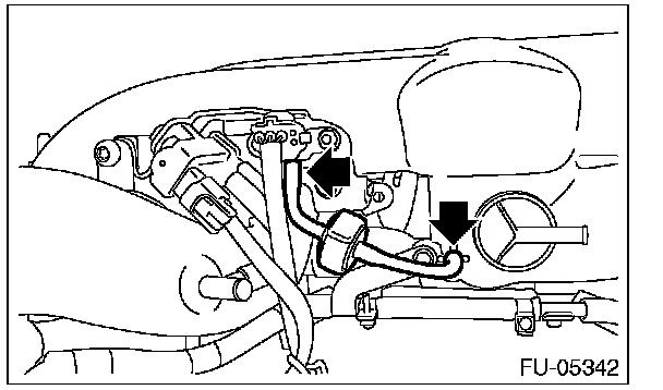 2. Remove the engine ground terminal from the fuel pipe protector LH and remove the fuel pipe protector LH from the intake manifold.