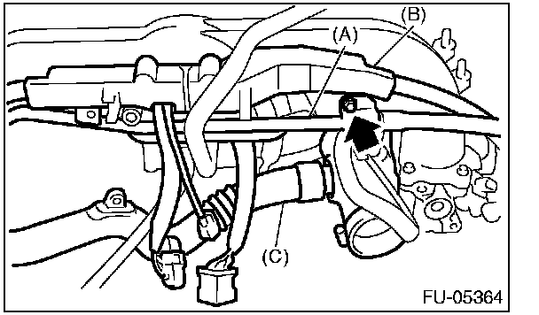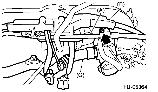 10. Install PCV pipe (A), harness assembly (B) and intake duct (C) to the intake manifold.
