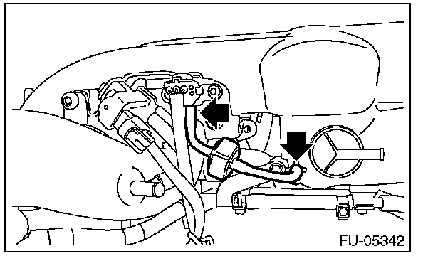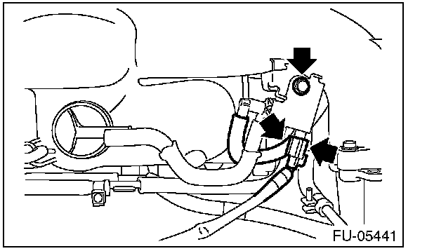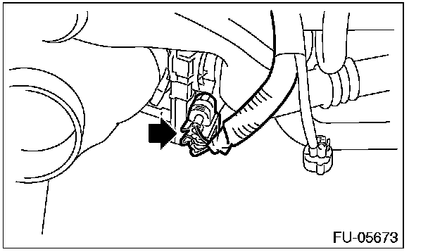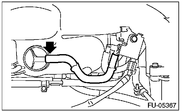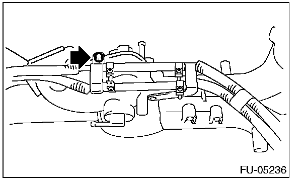 17. Loosen the clamp which holds the fuel hose to the fuel injector pipe RH and the fuel pipe, and then disconnect the pipe from the fuel hose.