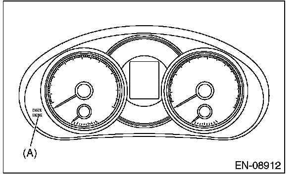 ACTIVATION OF MALFUNCTION INDICATOR LIGHT1. When the ignition switch is turned to ON (engine OFF), the malfunction indicator light (A) in the combination meter illuminates.