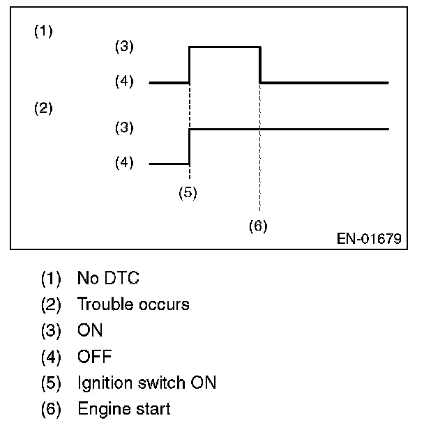 2. After the engine starts, malfunction indicator light blinks in a cycle of 0.5 Hz. (During diagnosis)