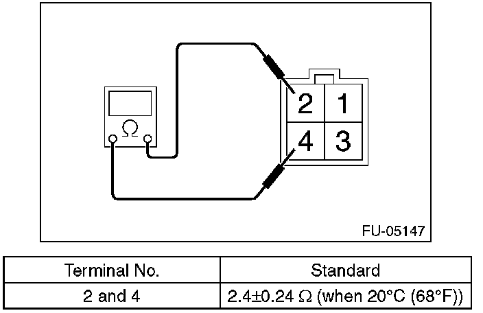Measure the resistance between front oxygen (A/F) sensor terminals.