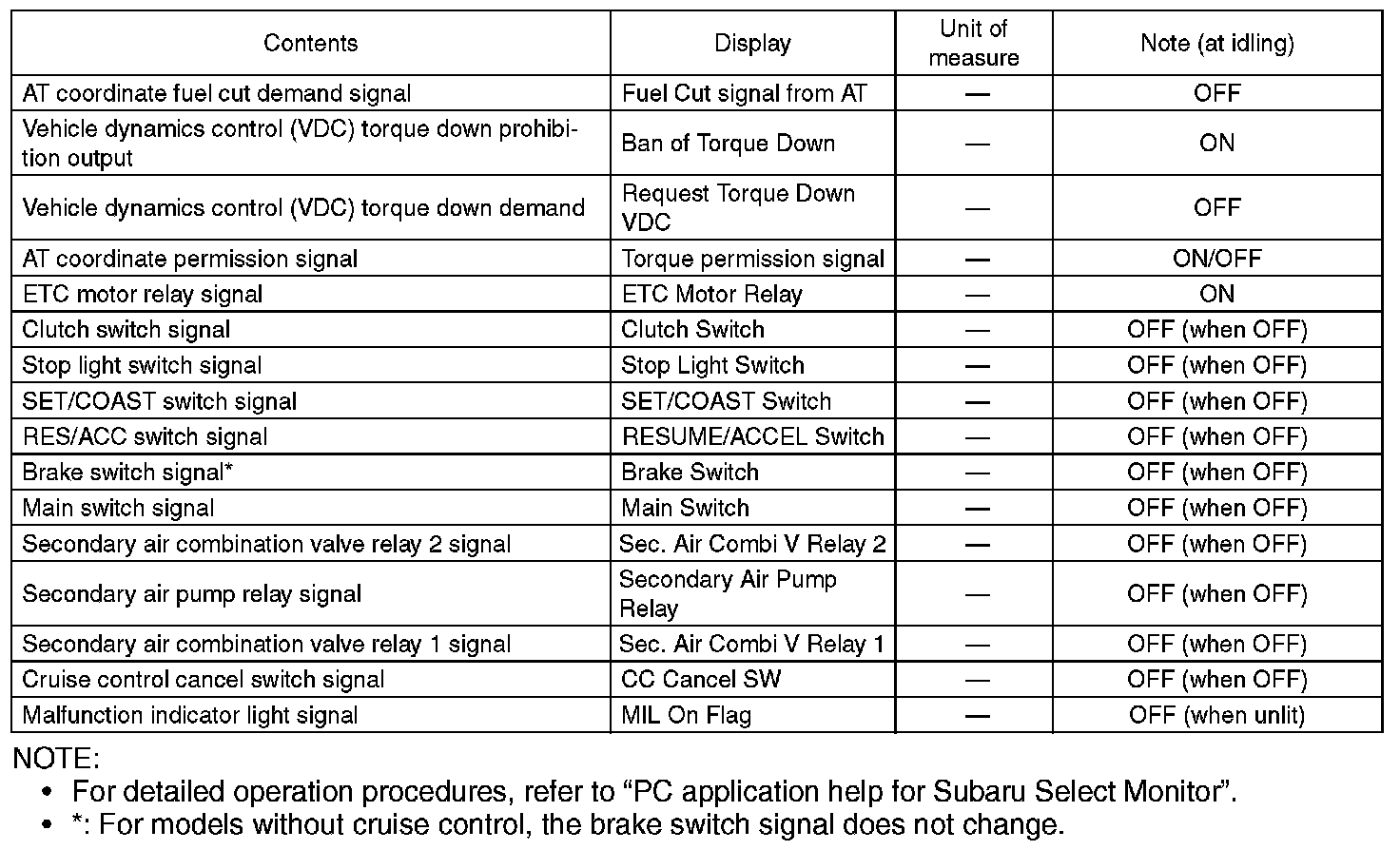 NOTE: For detailed operation procedures, refer to "PC application help for Subaru Select Monitor".