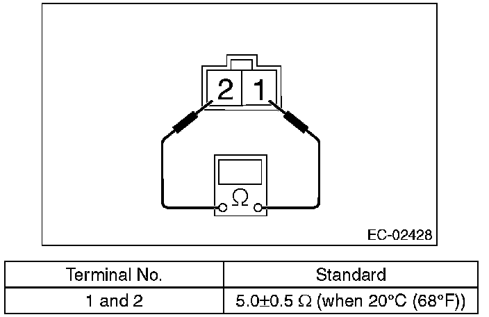 2. Check the resistance between the terminals of secondary air combination valve LH.