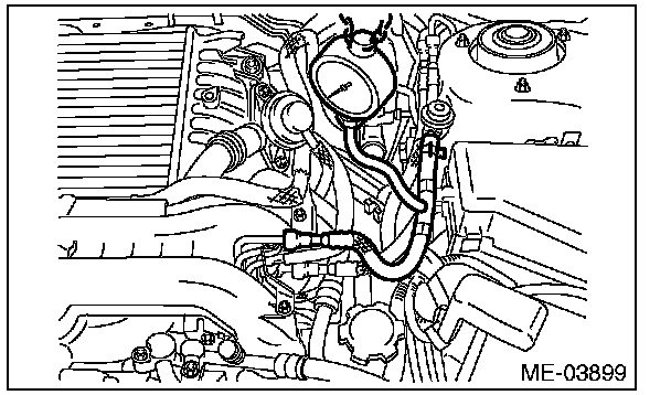 ^ Before removing the fuel pressure gauge, release the fuel pressure.