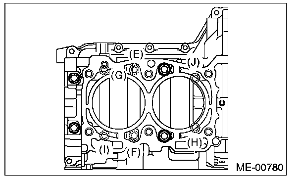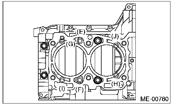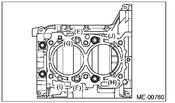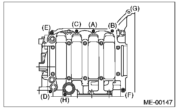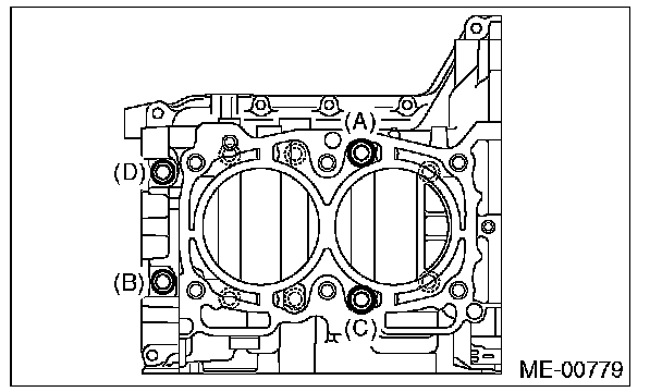 Cylinder block bolts10 mm bolts LH side (A - D) 10 Nm (1.0 kgf-m, 7.4 ft-lb)