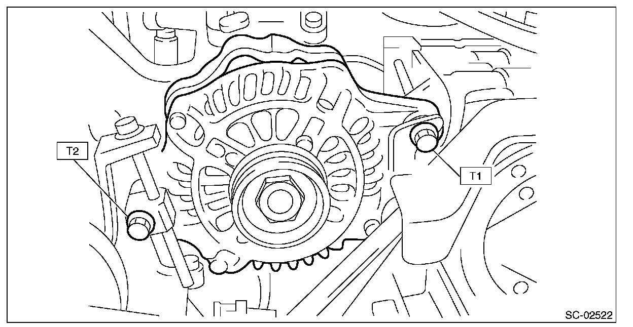 T2: 25 N.m (2.5 kgf.m, 18.4 ft.lb)